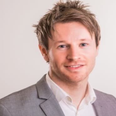 Man Pointing at Big Computer Monitors